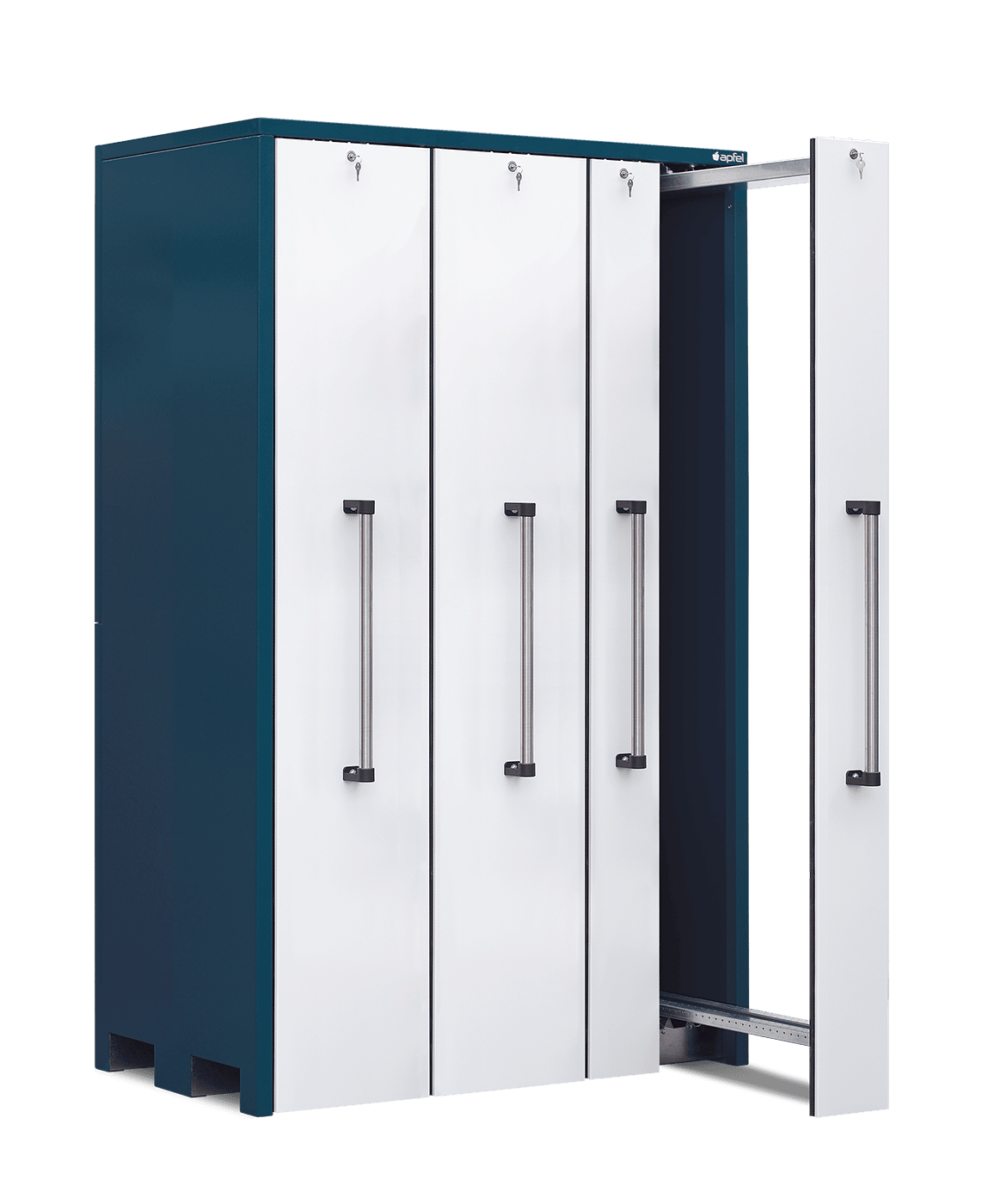 - Sicherheit und Staubschutz: Mitlaufende Räder an jedem Auszug verhindern das Kippen beim Öffnen. Beidseitige Gummilippen sorgen für eine staubarme Lagerung und schützen den Inhalt zuverlässig.