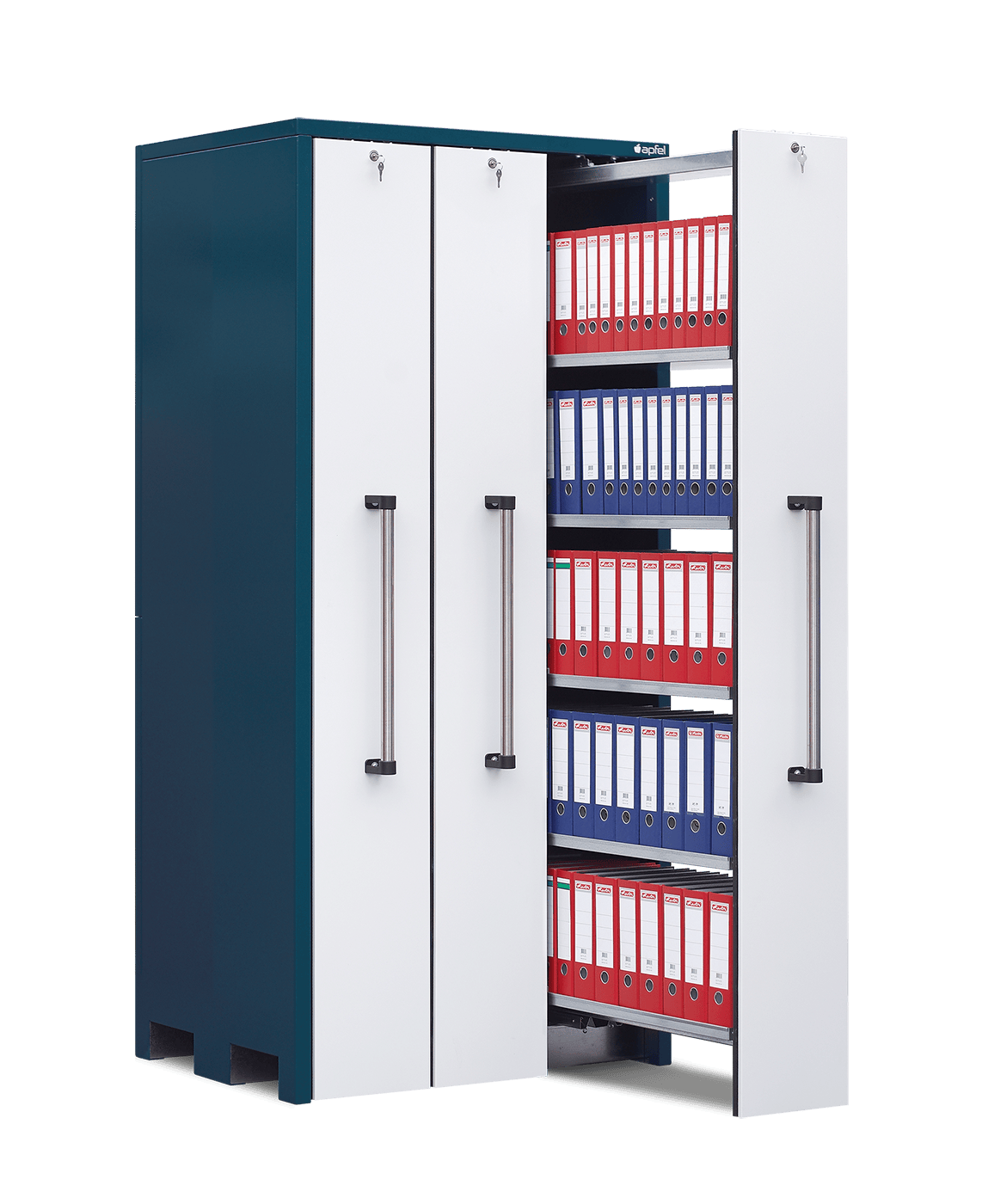 • Optimal zur übersichtlichen Lagerung von Ordnern: Drei Vertikalauszüge à 300 mm Breite bieten zusammen Platz für rund 105 klassische DIN-A4-Ordner und ermöglichen eine strukturierte Archivierung auf 1.025 mm Gesamtbreite.