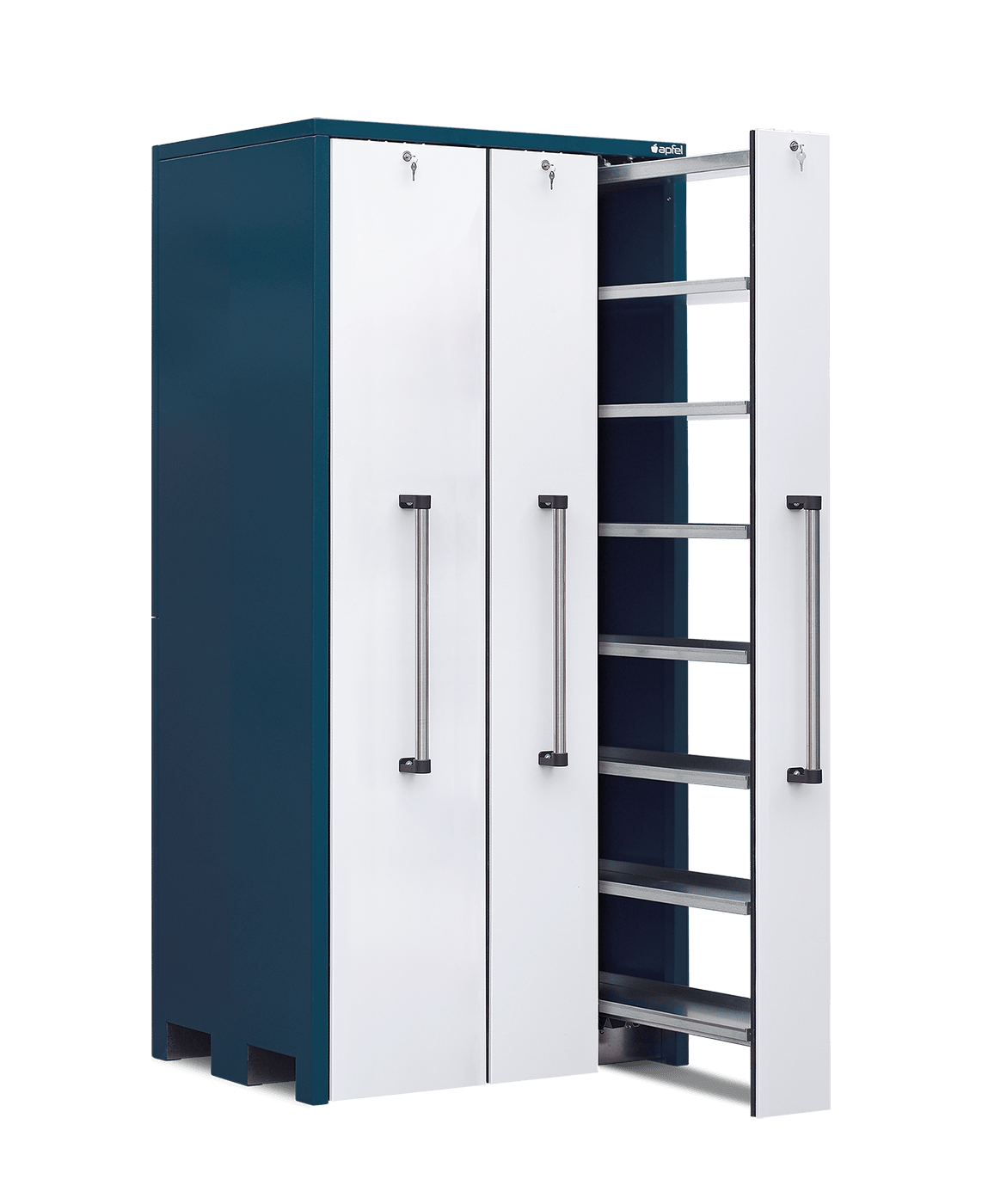 - Stabile und langlebige Bauweise: Pulverbeschichtetes Stahlblech, mitlaufende Räder an jedem Auszug und einzeln abschließbare Auszüge sorgen für einen sicheren Betrieb und hohe Langlebigkeit im täglichen Einsatz.