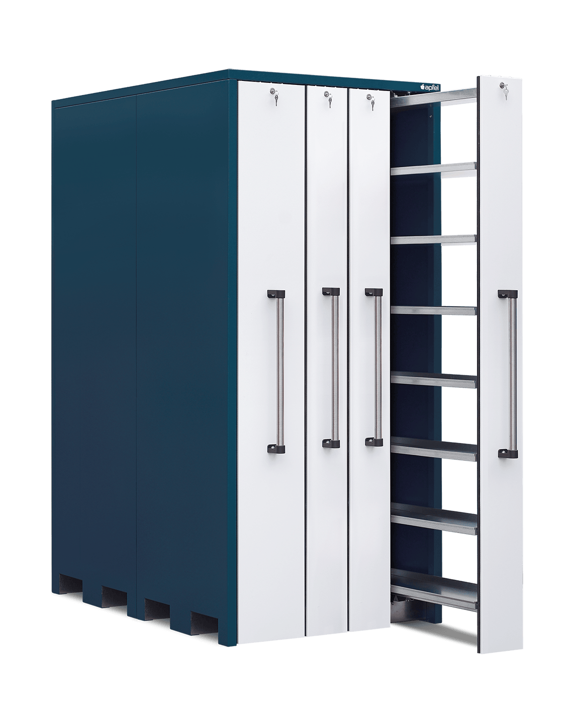 - Flexible Handhabung im Alltag: Im Leerzustand kann der Vertikallagerschrank dank integrierter Hubwagentaschen schnell und einfach an einen neuen Standort bewegt werden.