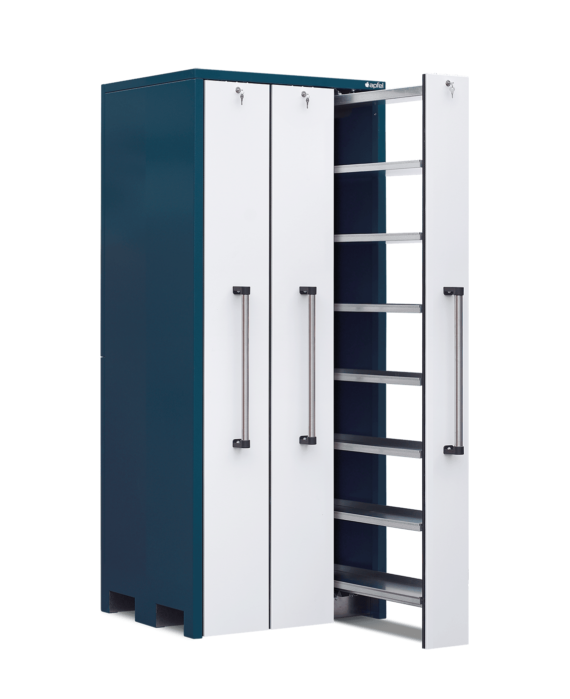 - Stabile und langlebige Bauweise: Pulverbeschichtetes Stahlblech, mitlaufende Räder an jedem Auszug und einzeln abschließbare Auszüge sorgen für einen sicheren Betrieb und hohe Langlebigkeit im täglichen Einsatz.