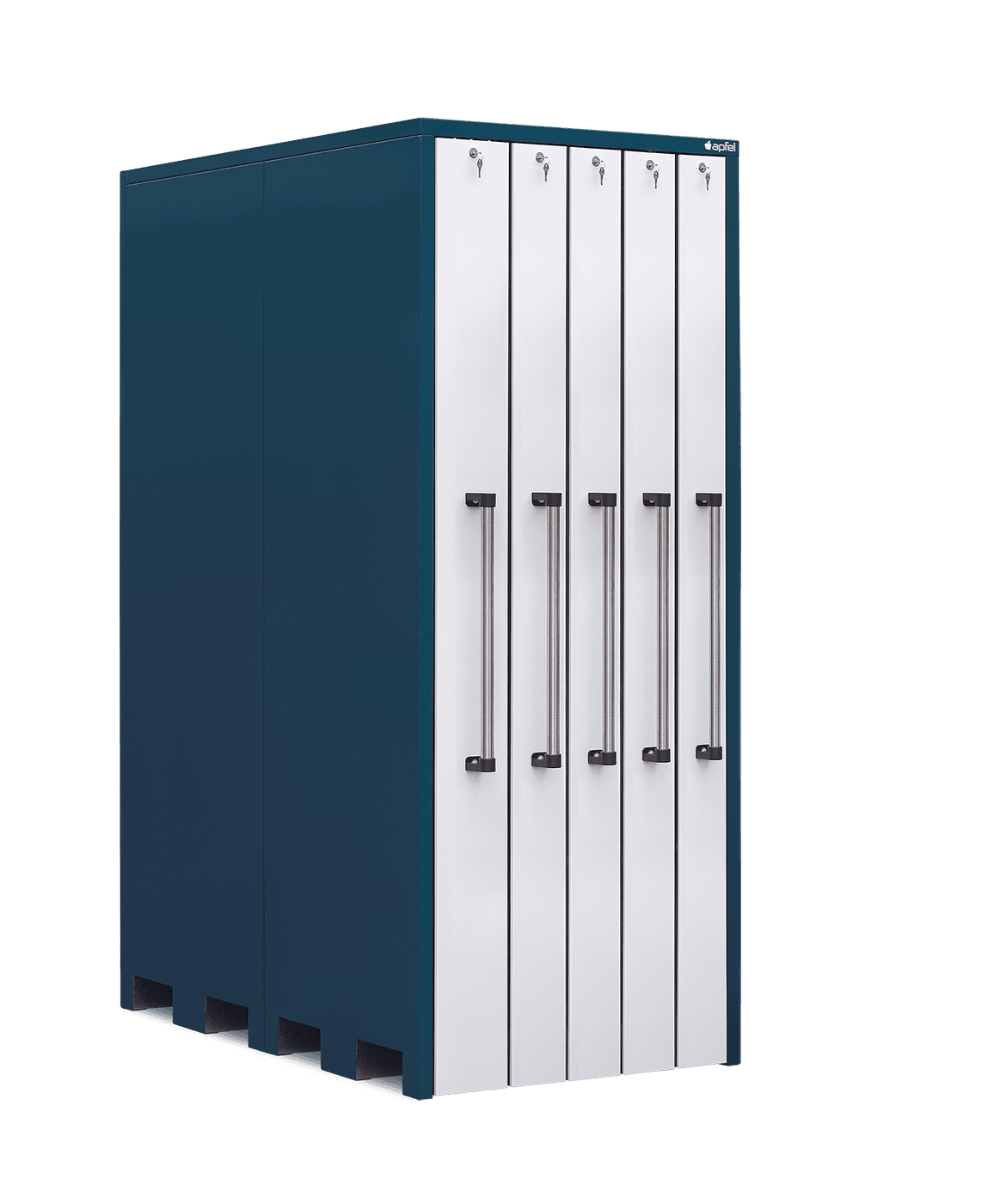 Der VST 7800 ist die ideale Lösung für alle, die maximale Ordnung bei gleichzeitig individueller Gestaltung ihres Lagersystems wünschen. Als unbestückter Vertikallagerschrank bietet er maximale Flexibilität bei der Innenausstattung – ganz gleich, ob Sie Lagerkästen, Universalwannen, Fachböden oder Sonderzubehör einsetzen möchten. Die solide Stahlblechkonstruktion mit vernieteten Auszügen sorgt für Stabilität im täglichen Einsatz. Jeder der fünf Vertikalauszüge trägt bis zu 300 kg und ist einzeln abschließbar. Mitlaufende Rollen verhindern das Kippen beim Herausziehen, während Hubwagentaschen für einfaches Umsetzen im Leerzustand sorgen.