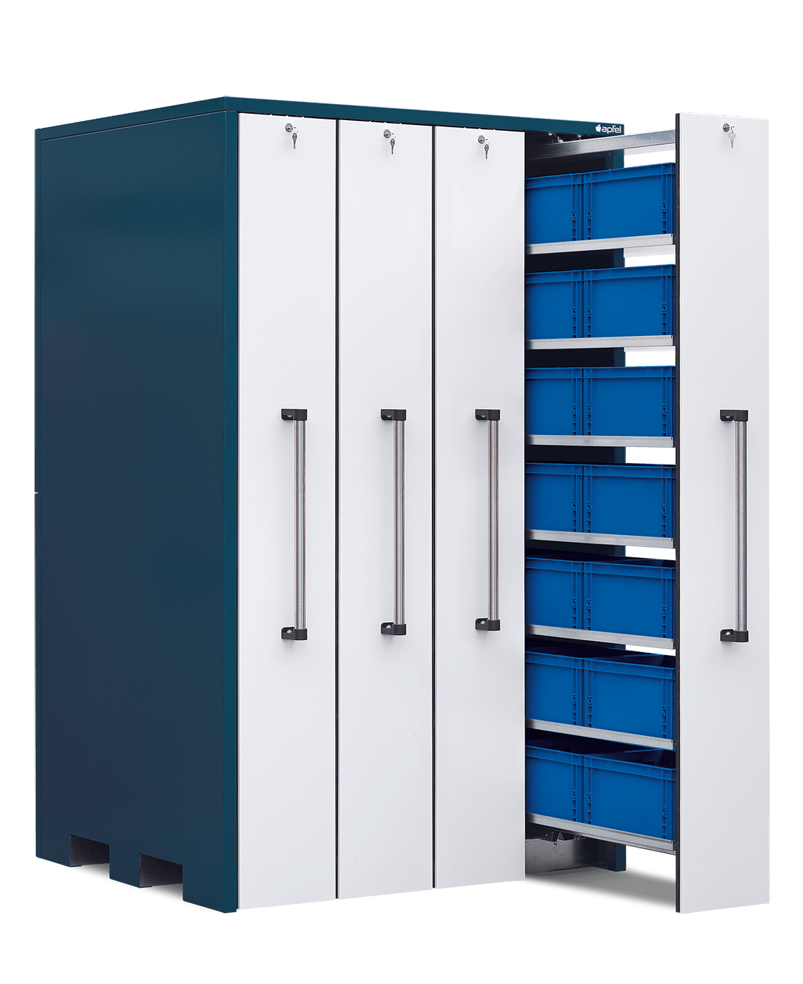 • Sichere und staubarme Lagerung: Mitlaufende Räder, beidseitige Gummilippen und abschließbare Auszüge schützen den Inhalt zuverlässig vor Staub und unbefugtem Zugriff.