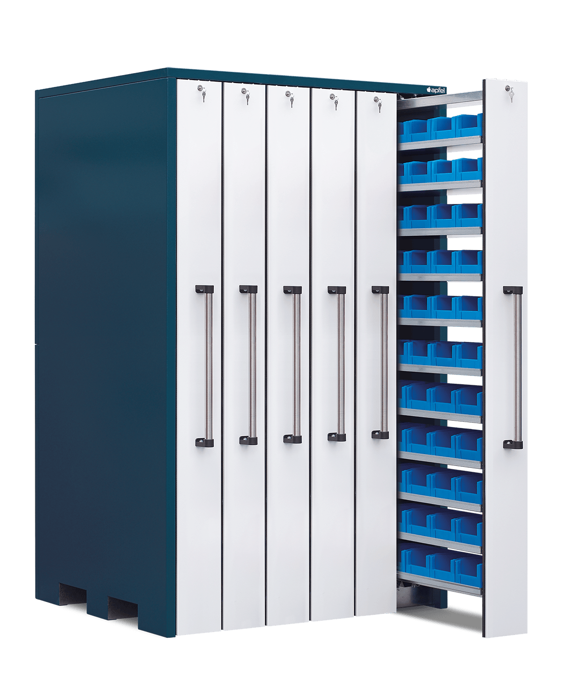 • Sichere und staubarme Lagerung: Mitlaufende Räder, beidseitige Gummilippen und abschließbare Auszüge schützen den Inhalt zuverlässig vor Staub und unbefugtem Zugriff.
