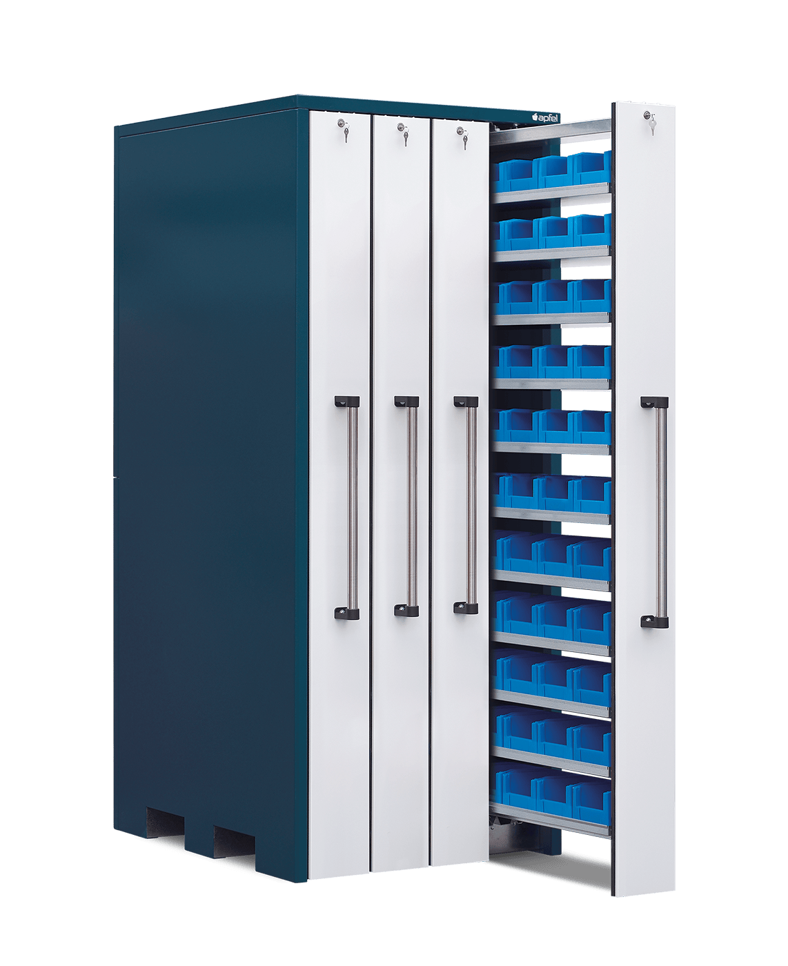 - Platzsparende Lagerung: Lagert hunderte verschiedene Artikel auf geringer Grundfläche bei optimaler Übersicht.