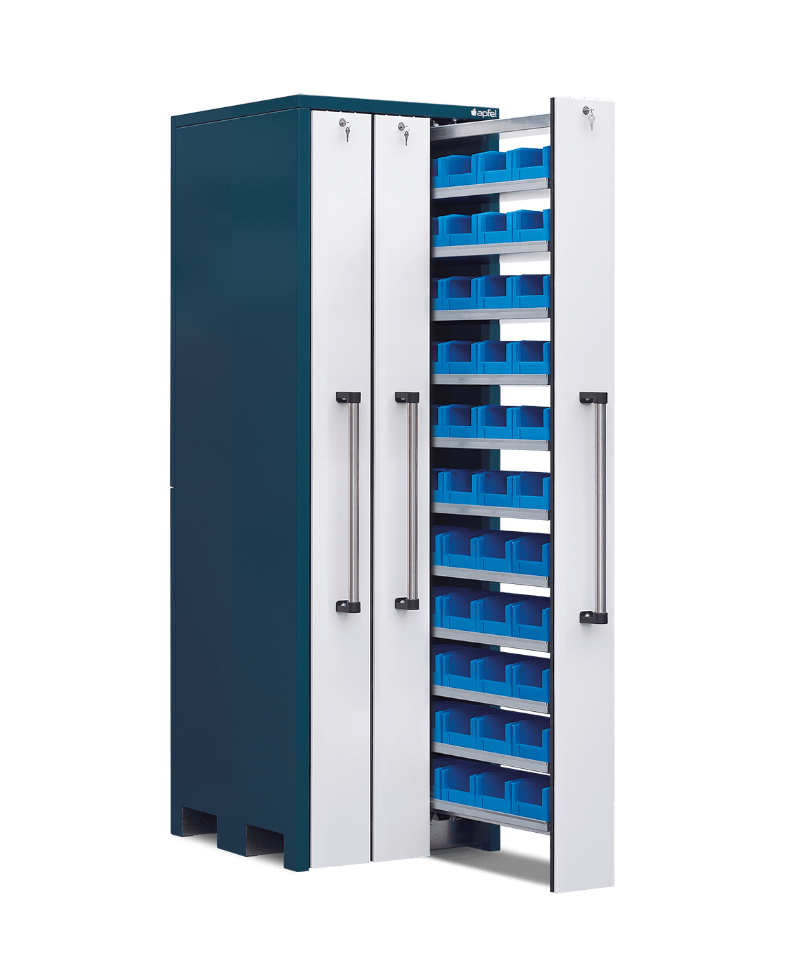 - Platzsparende Lagerung: Lagert hunderte verschiedene Artikel auf nur ca. einem Quadratmeter Fläche und sorgt für maximale Übersicht.