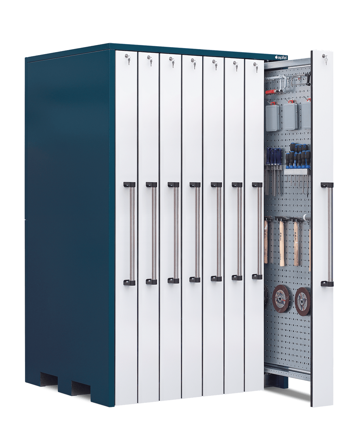 - Optimal zur übersichtlichen Lagerung von Werkzeugen: Acht Vertikalauszüge à 150 mm Breite bieten eine strukturierte und platzsparende Aufbewahrung.