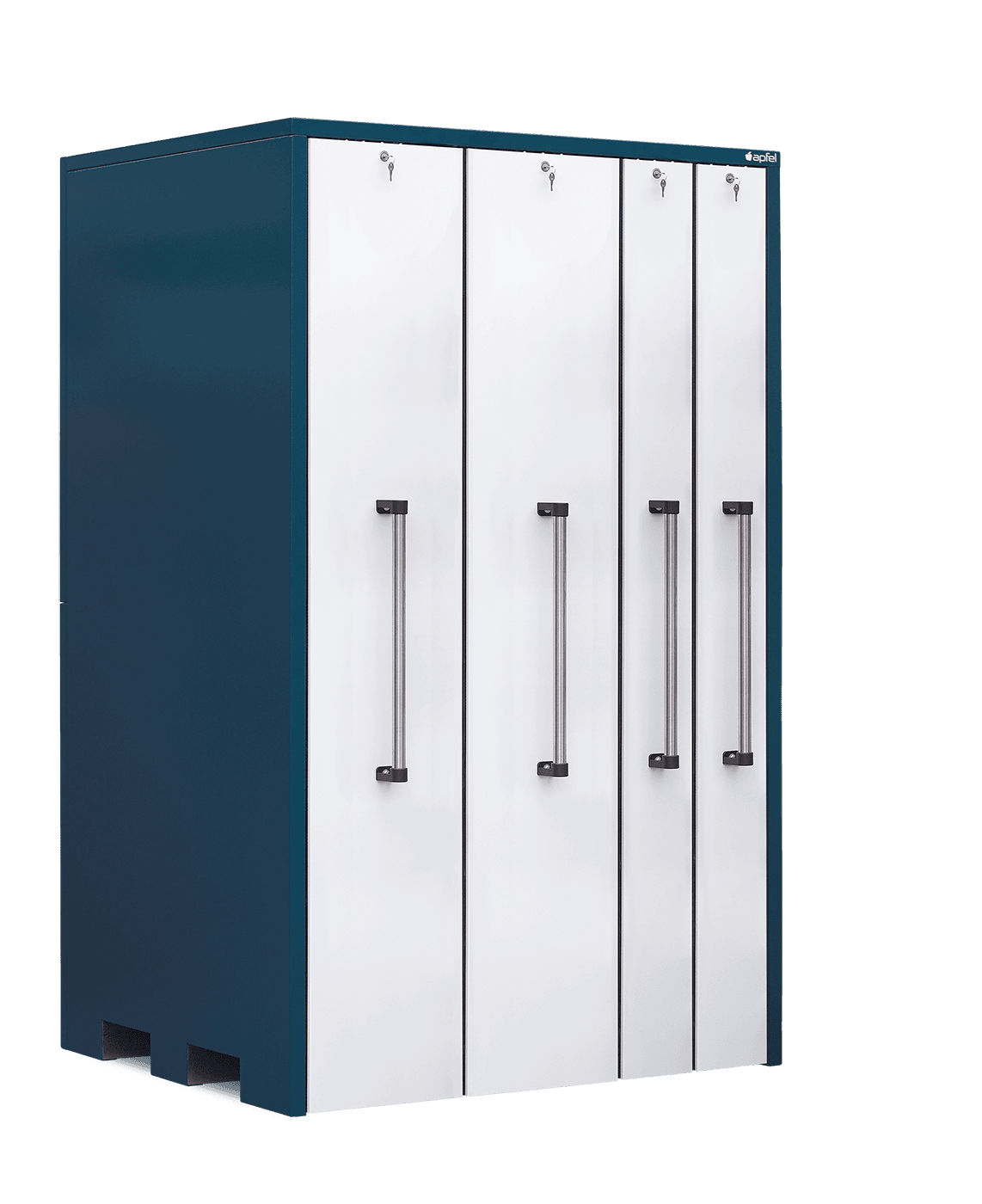 - Flexible Handhabung: Dank integrierter Hubwagentaschen lässt sich der Schrank im Leerzustand einfach bewegen.