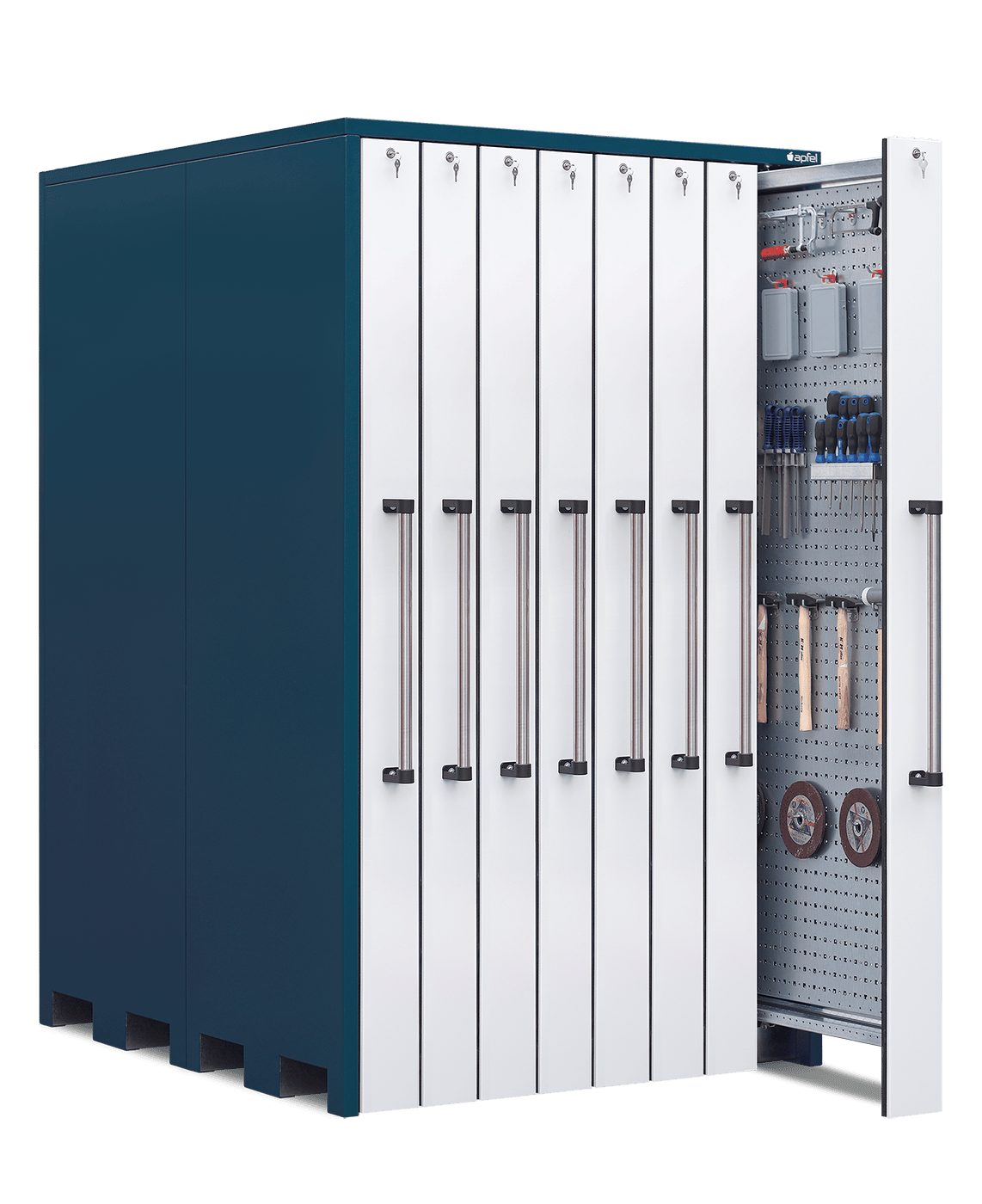 - Optimal zur übersichtlichen Lagerung von Werkzeugen: Acht Vertikalauszüge à 150 mm Breite schaffen viel Raum für eine fein gegliederte Aufbewahrung.