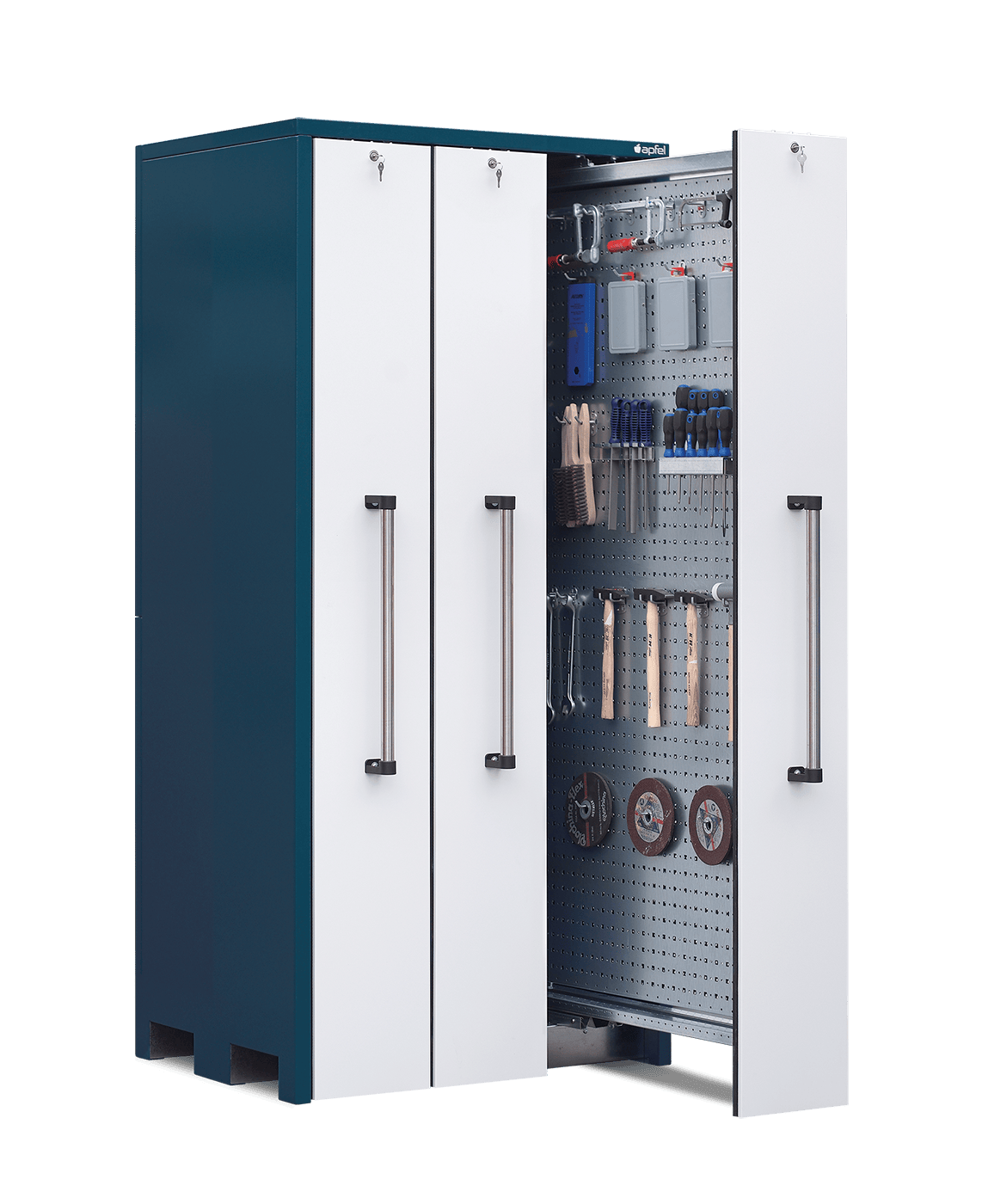 • Optimal zur übersichtlichen Lagerung von Werkzeugen: Drei Vertikalauszüge à 300 mm Breite bieten eine großzügige und gut strukturierte Lösung für Werkzeuge, Betriebsmittel und Kleinteile.