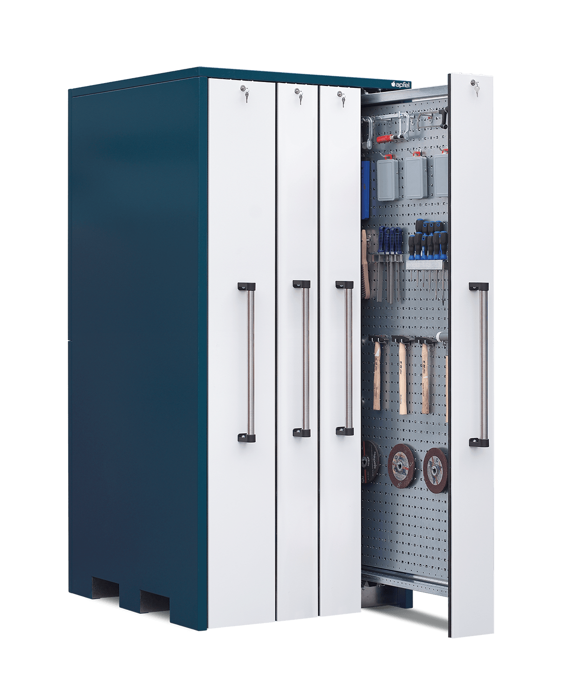 - Optimal zur übersichtlichen Lagerung von Werkzeugen: Ein Vertikalauszug à 300 mm Breite und drei Vertikalauszüge à 200 mm Breite sorgen für eine durchdachte und strukturierte Aufbewahrung.