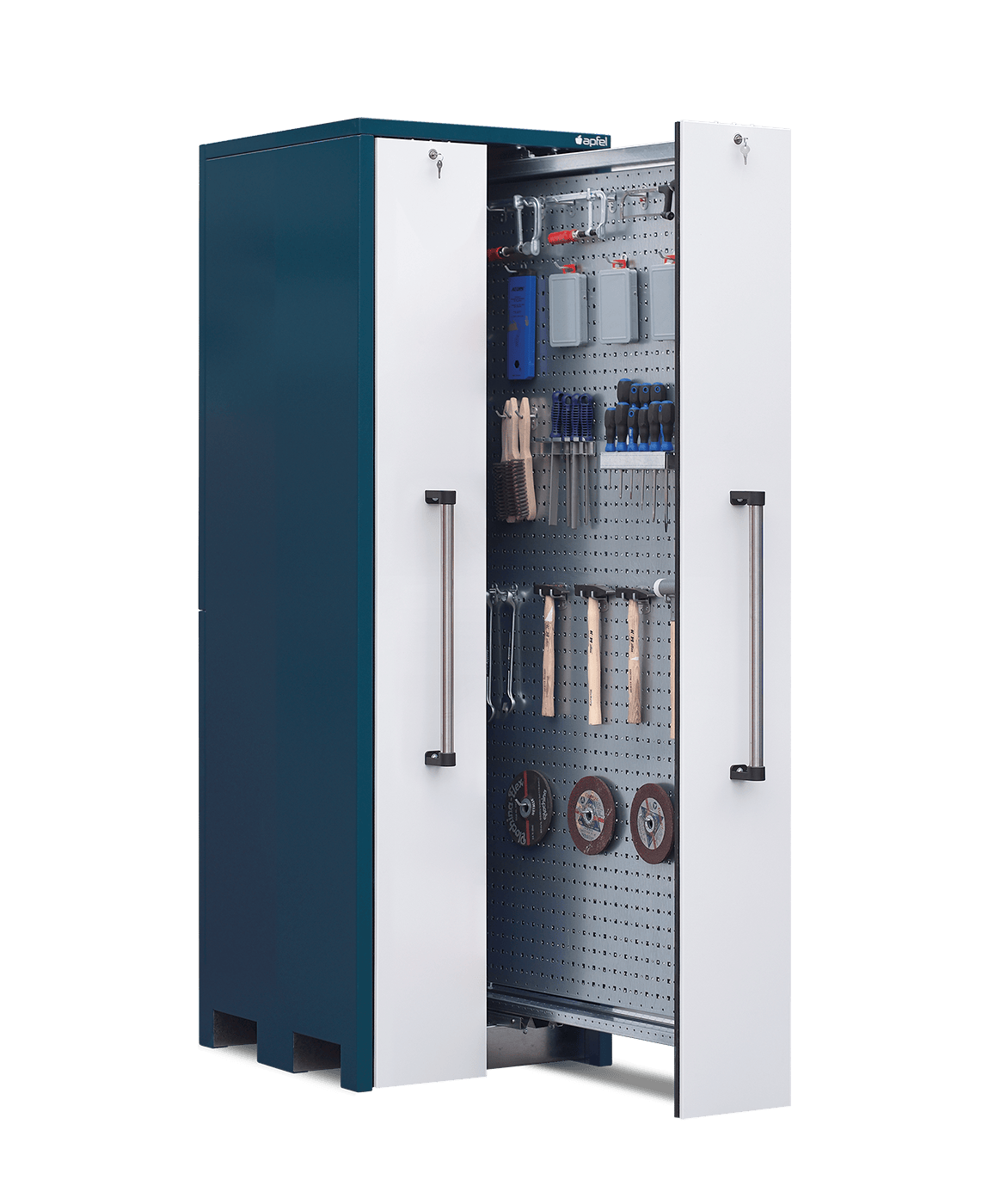 - Optimal zur übersichtlichen Lagerung von Werkzeugen: Zwei Vertikalauszüge à 300 mm Breite bieten eine großzügige und klar strukturierte Lösung für Werkzeuge und Betriebsmittel.