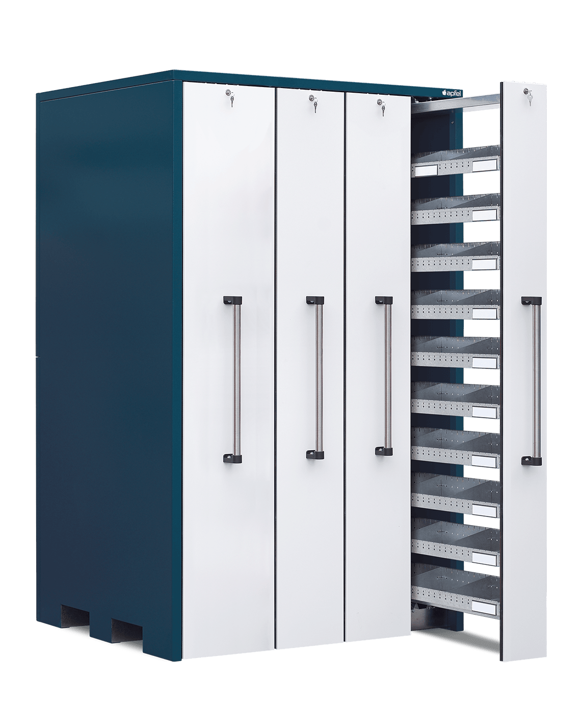 • Sichere und staubarme Lagerung: Mitlaufende Räder, beidseitige Gummilippen und einzeln abschließbare Auszüge schützen den Inhalt zuverlässig vor Staub und unbefugtem Zugriff.