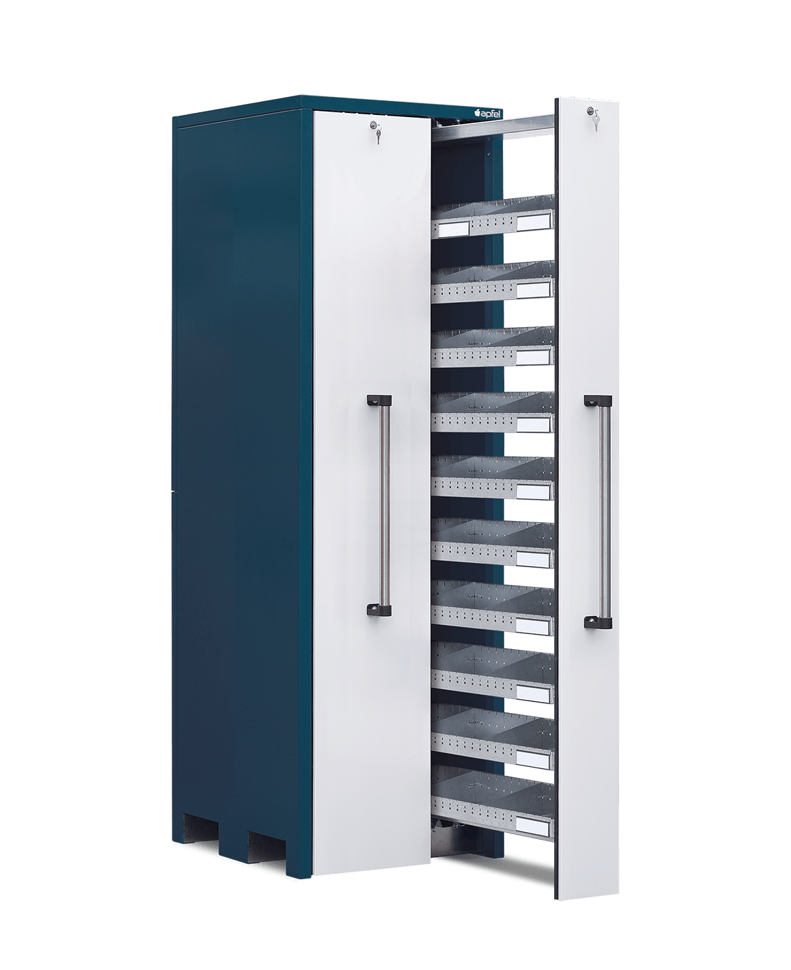 • Sichere und staubarme Lagerung: Mitlaufende Räder, beidseitige Gummilippen und abschließbare Auszüge schützen den Inhalt zuverlässig vor Staub und unbefugtem Zugriff.