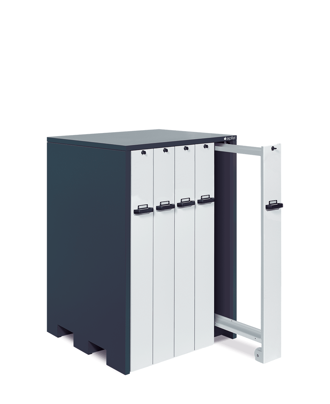 - Höher = mehr Stauraum: Mit 1.620 mm Höhe bietet der WKS 003 deutlich mehr Kapazität bei gleichzeitig ergonomischer Zugriffshöhe.