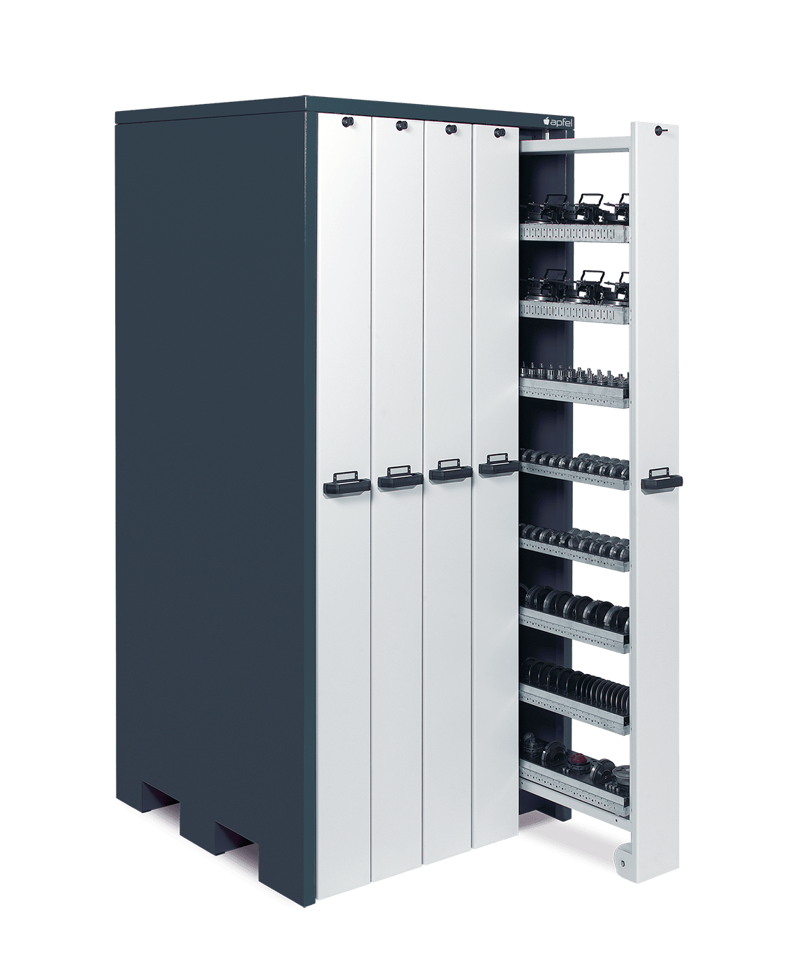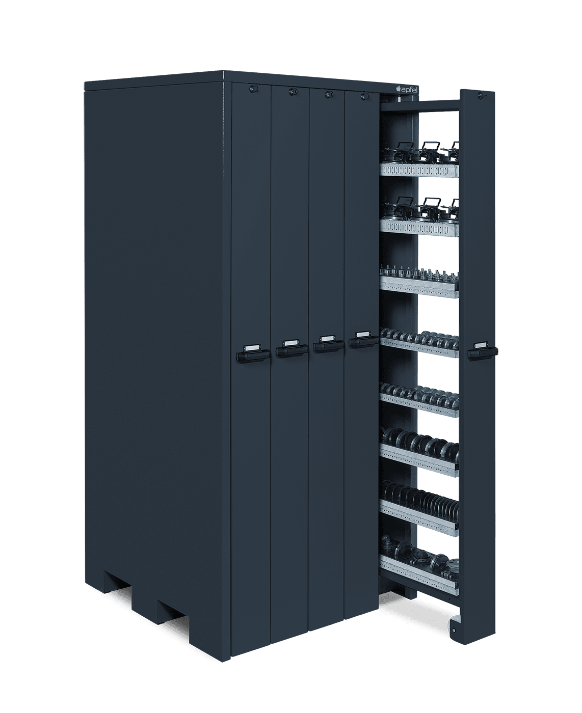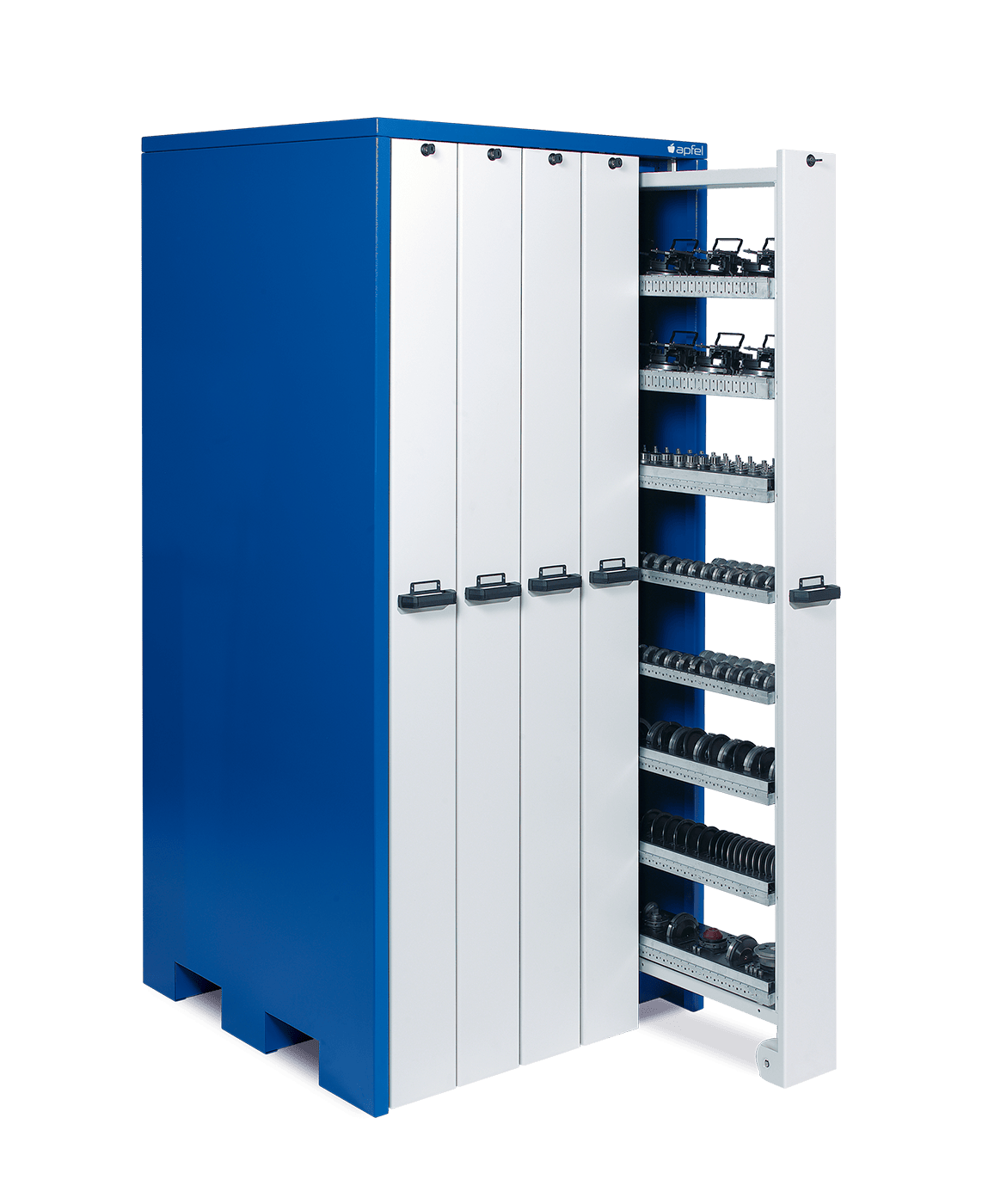 - Sicher und mobil: Jeder Auszug ist einzeln abschließbar und schützt wertvolle Stanzwerkzeuge vor unbefugtem Zugriff. Mitlaufende Räder und die Verfahrbarkeit per Hubwagen ermöglichen einen einfachen Standortwechsel.