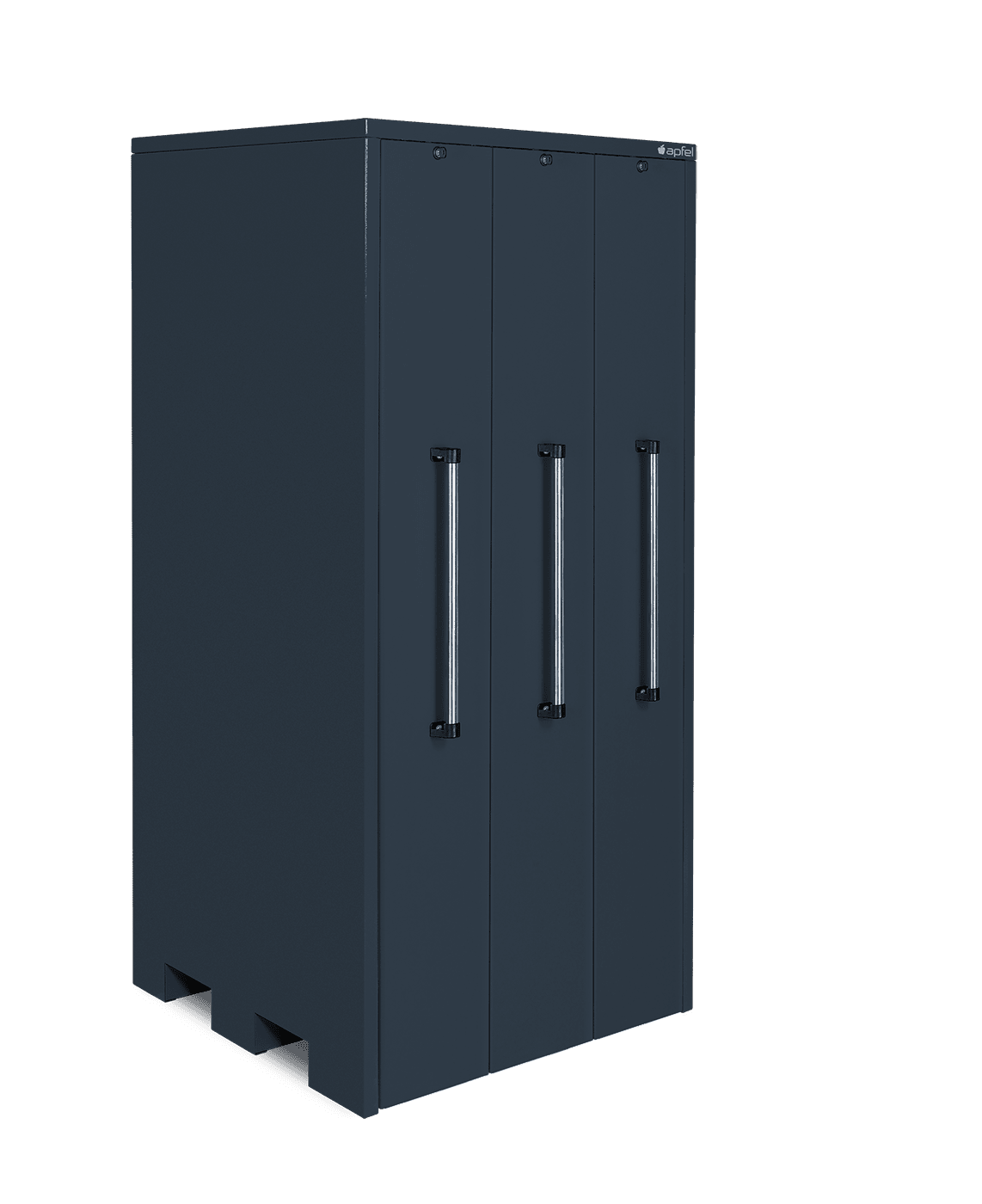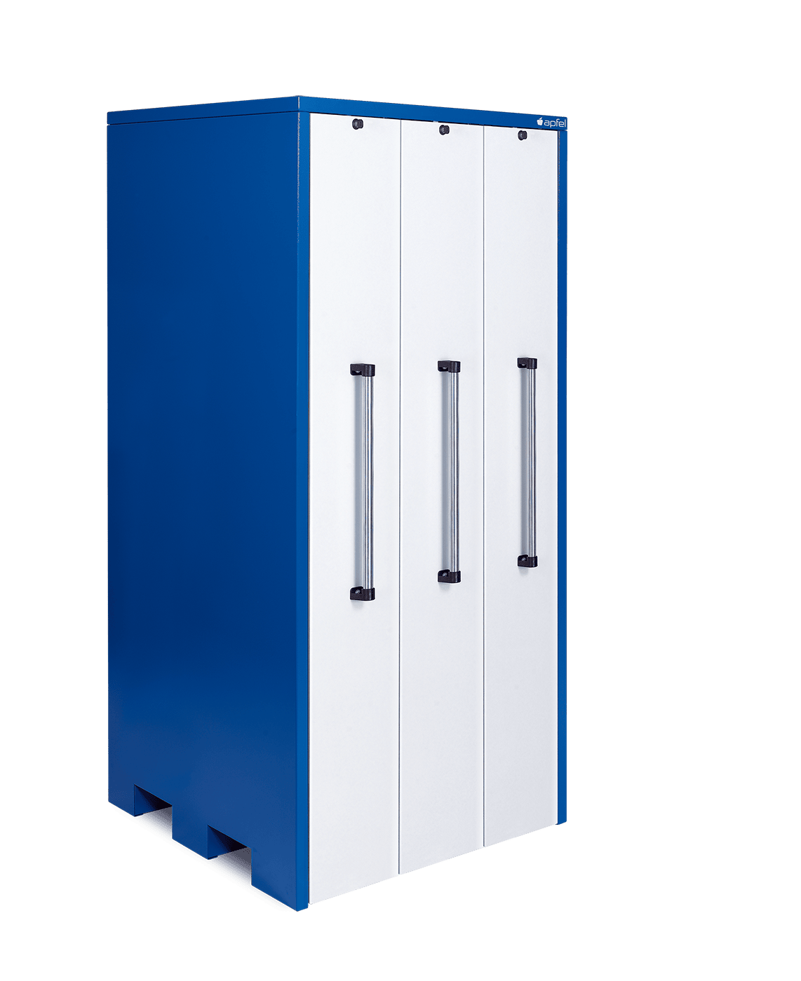 • Platzsparende Lagerung für schwere und voluminöse Artikel: Mit Maßen von 2.140 mm Höhe, 1.040 mm Breite und 1.050 mm Tiefe bietet der Schrank optimale Bedingungen für große Artikelmengen auf minimaler Stellfläche.