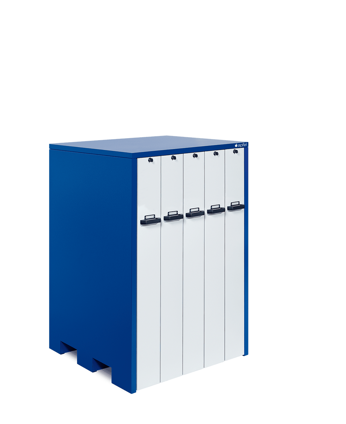 - Robuste Ausführung und ansprechende Optik: Die pulverbeschichtete Stahlkonstruktion schützt zuverlässig vor Beanspruchungen im Werkstattalltag. Die Farbkombination aus Enzianblau und Grauweiß sorgt für ein hochwertiges Erscheinungsbild.