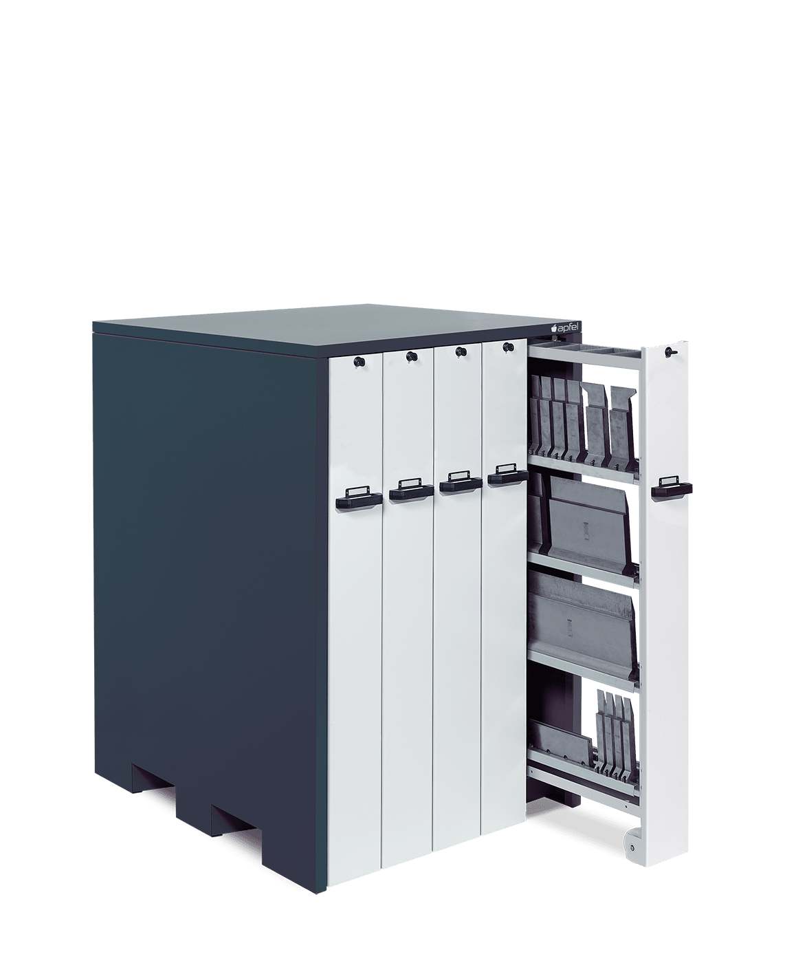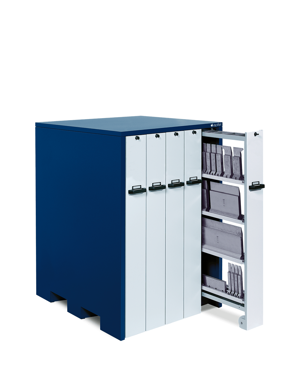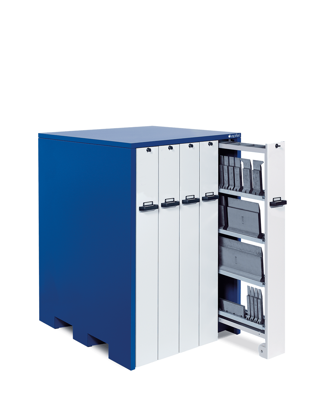 - Hohe Tragkraft für schwere Werkzeuge: Fünf Vertikalauszüge bieten jeweils eine Tragkraft von 900 kg. Auch schwere und sperrige Abkantwerkzeuge werden sicher und stabil gelagert.