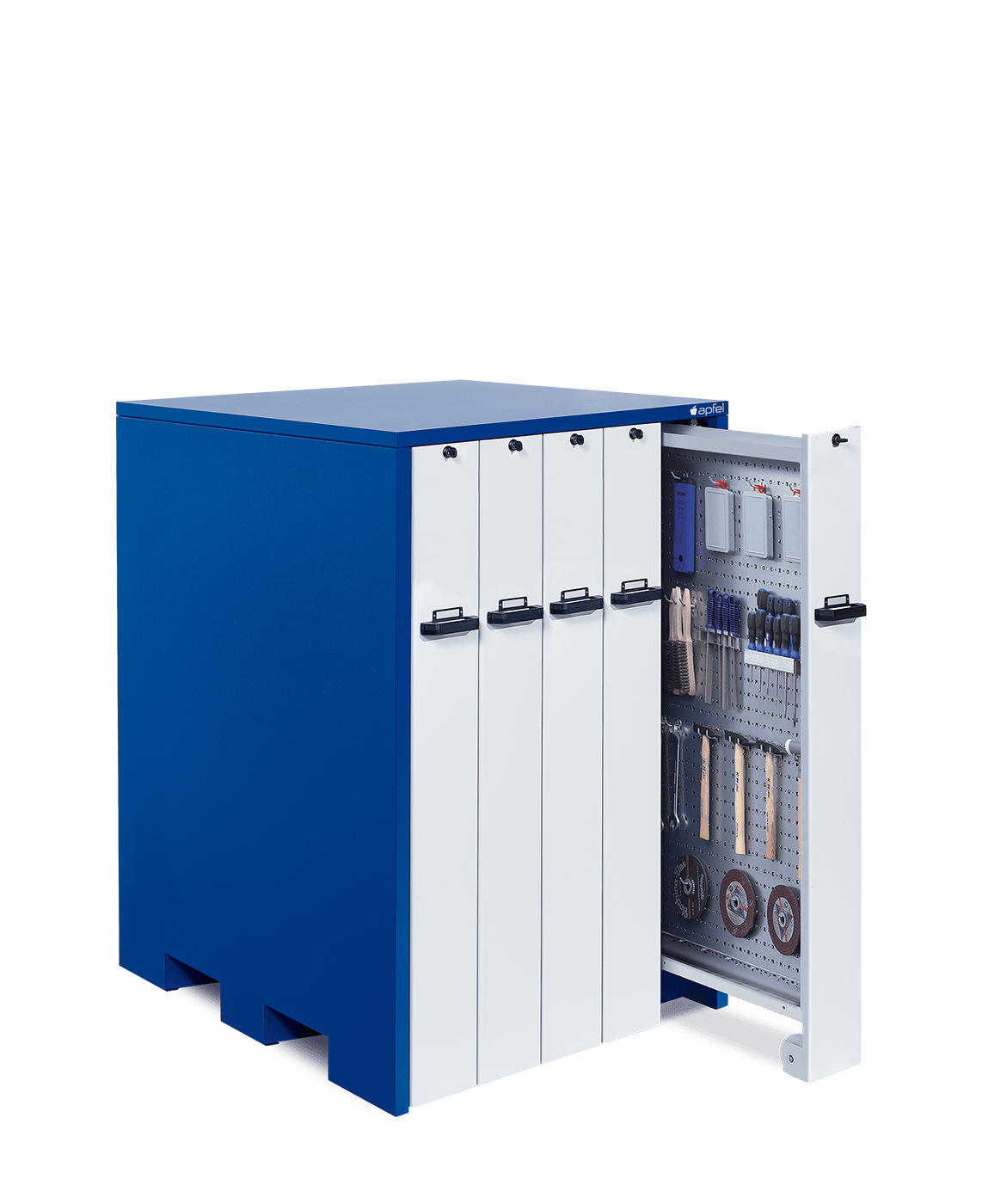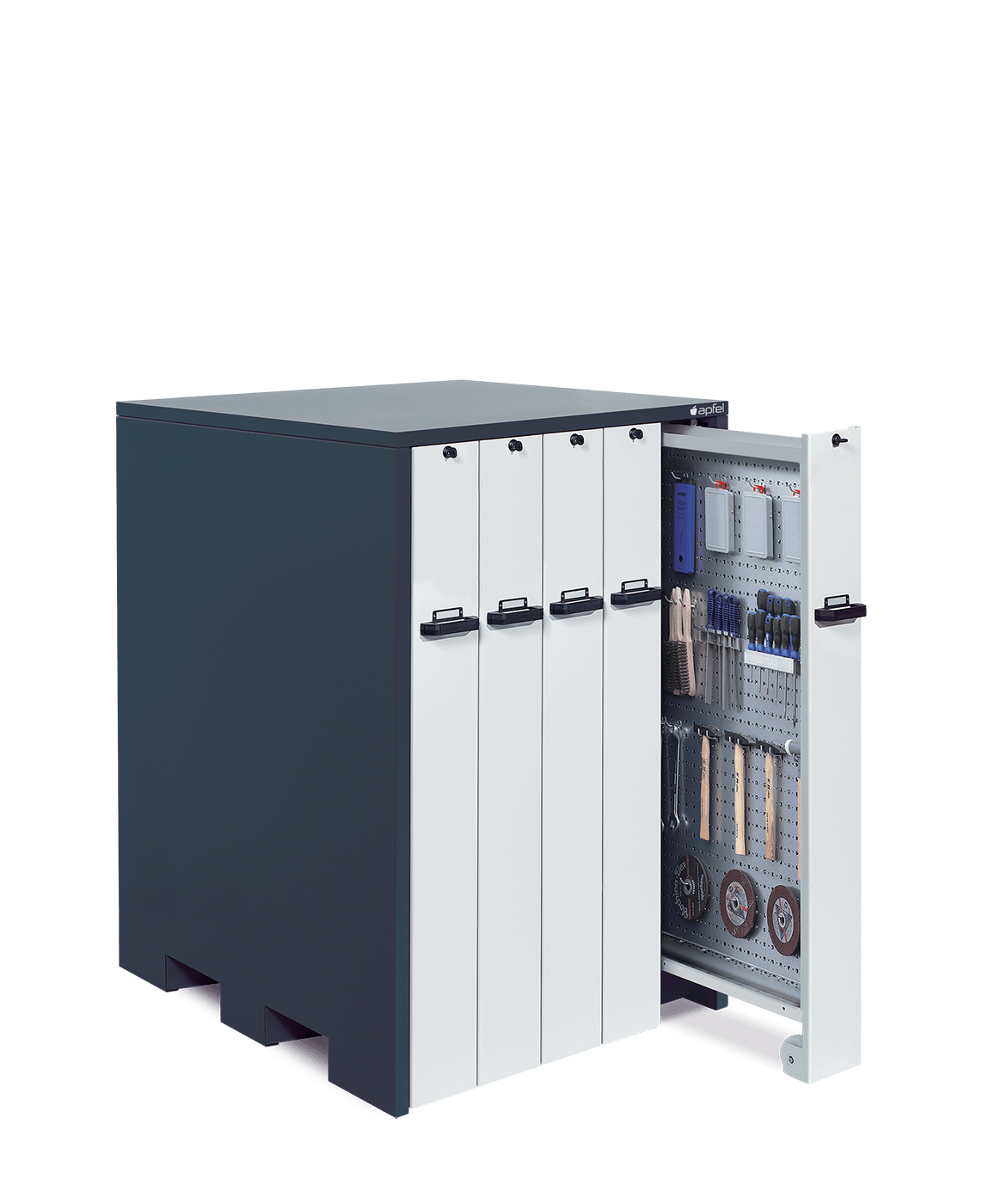 • Sicher und mobil: Jeder Auszug ist einzeln abschließbar und schützt wertvolle Bestände vor unbefugtem Zugriff. Mitlaufende Räder und Verfahrbarkeit per Hubwagen ermöglichen einen flexiblen Standortwechsel.