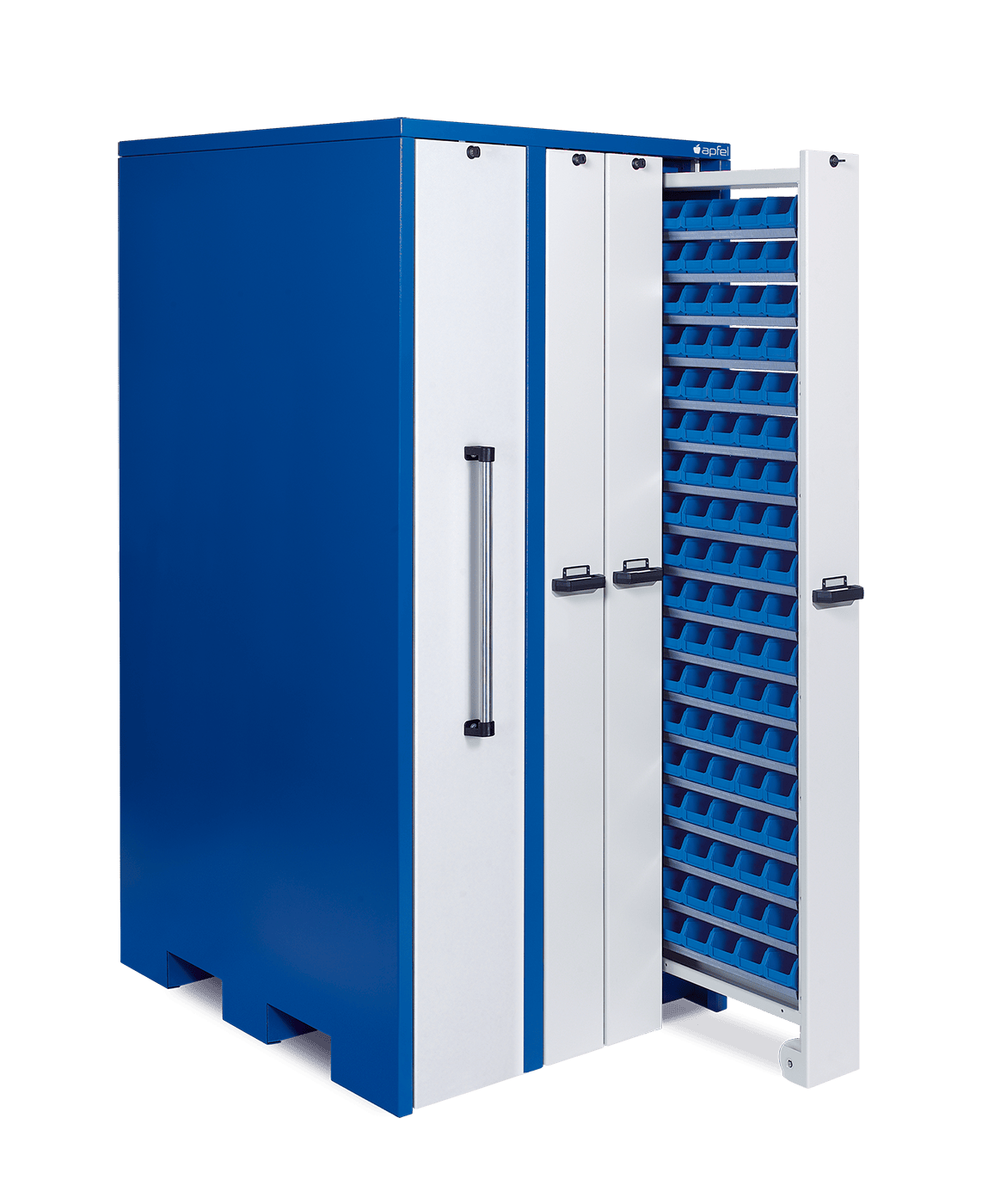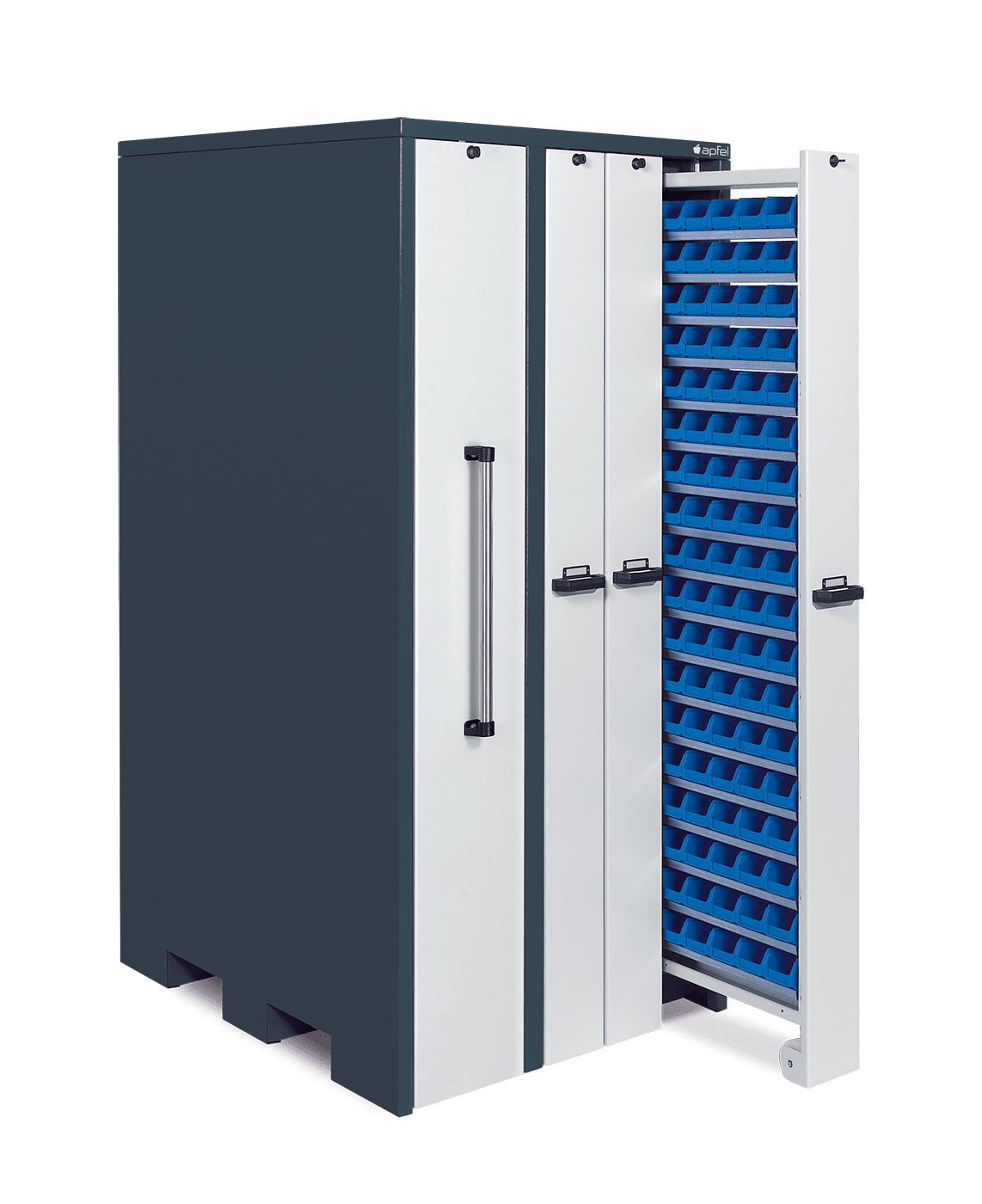 • Sicher und mobil: Jeder Auszug ist einzeln abschließbar und schützt wertvolle Bestände vor unbefugtem Zugriff. Mitlaufende Räder und die Verfahrbarkeit per Hubwagen ermöglichen einen einfachen Standortwechsel.