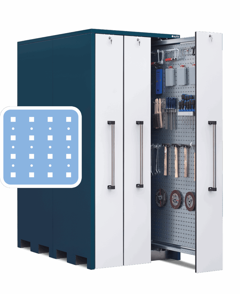 - Bis zu 6x mehr Lagerkapazität auf gleicher Fläche dank kompakter Werkzeugschränke und Lagertürme