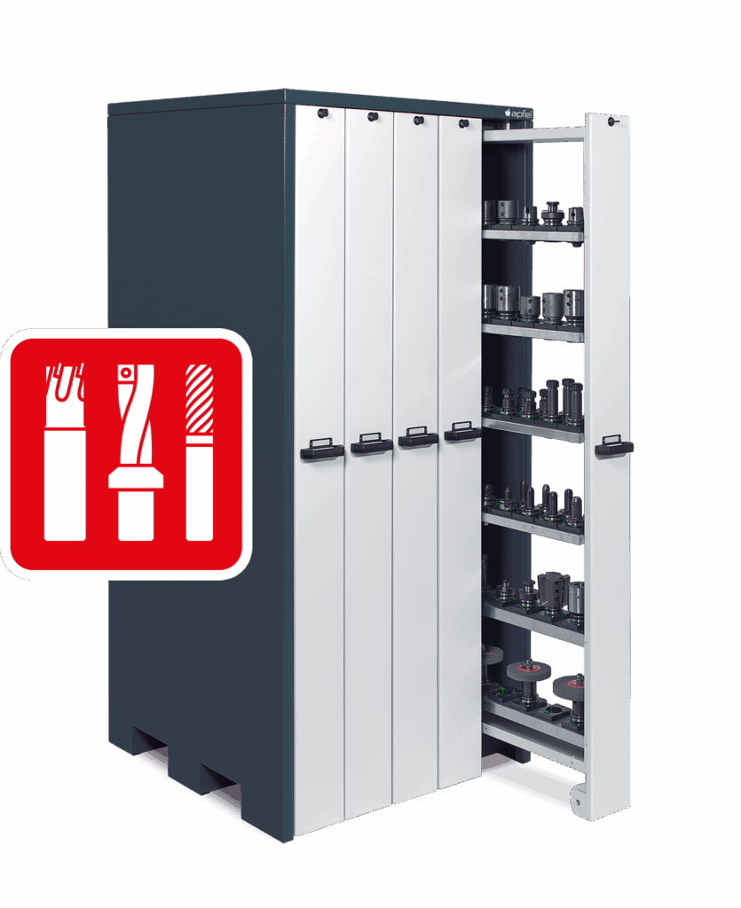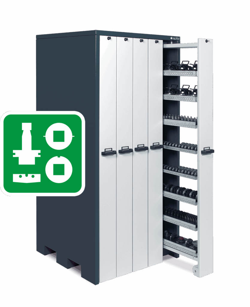 - Reduziert durch schnellen Zugriff kostspielige Rüstzeiten und erhöht durch maßgeschneiderte Halterungen die Lebensdauer der Werkzeuge