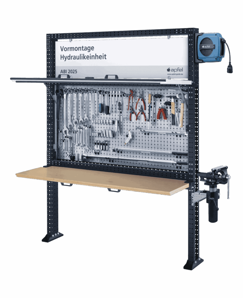 Klare Beschriftungen und ergonomische Anordnung sorgen dafür, dass jedes Werkzeug und jedes Material sofort verfügbar ist. Dadurch verkürzen sich Suchzeiten und Rüstprozesse spürbar.