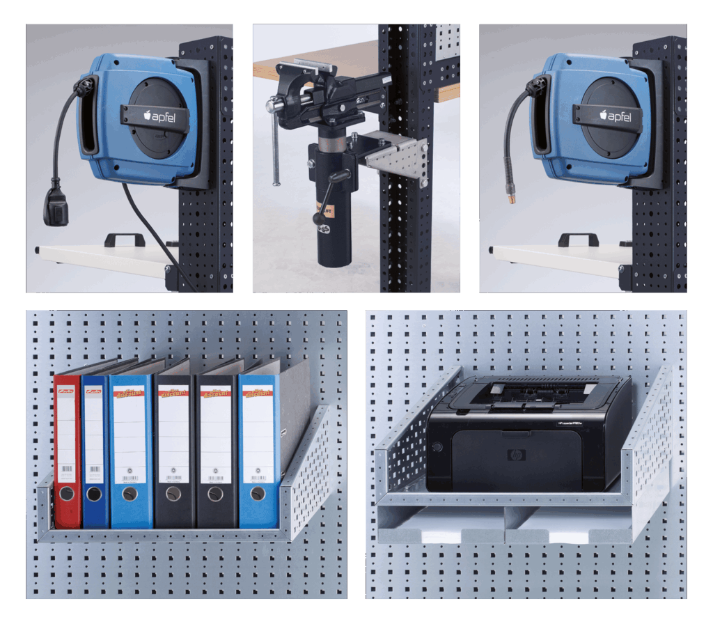 Alles passt zusammen: Das original Apfel Zubehör ist optimal auf die Betriebseinrichtungen abgestimmt. Ob Werkzeughalter, Lagerkästen, Schüttgutwanne oder Trennwandsystem: mit unserem Mix-&-Match-Prinzip schaffen Sie eine durchgängige Ordnung ohne Kompromisse.